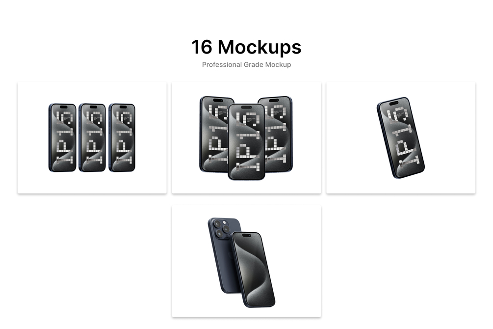 iPhone 15 Pro Mockup Bundle (16 PSD Mockups)
