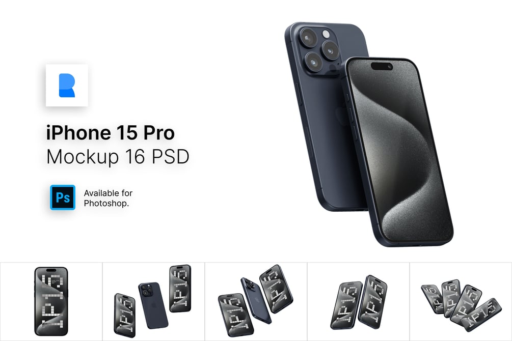 iPhone 15 Pro Mockup Bundle (16 PSD Mockups)
